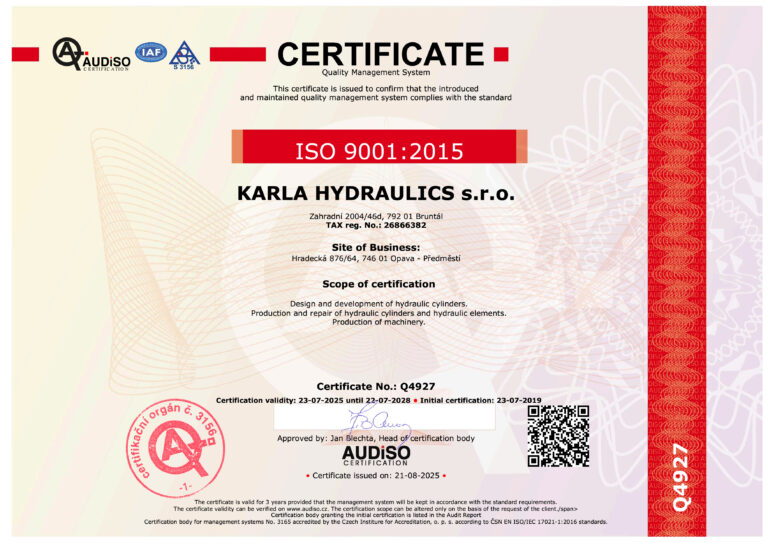Auf Grund der langjährigen Erfahrungen im Bereich der Hydraulikkreisläufe gewährt nun die Division auch Entwurfs- und Konstruktionsarbeiten einschließlich der Beratungstätigkeit und der technischen Entwürfe. Die Division KARLA HYDRAULICS zählt gegenwärtig zu bewährten Lieferanten der Hydraulikzylinder und Hydraulikelemente an Kunden in Tschechien, Frankreich, Deutschland und anderen europäischen Ländern.